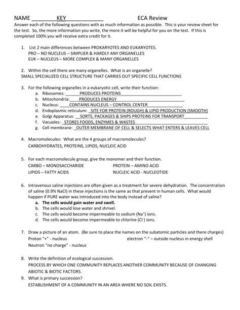 Free PDF Biology Eca High School Review Answer Key Doc Open Library